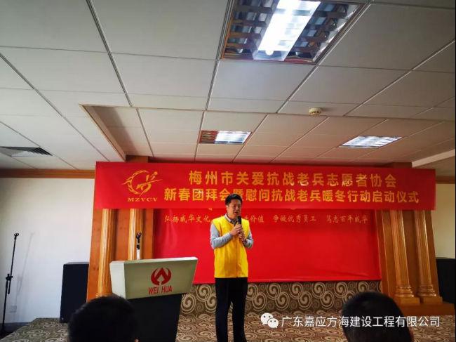 1月4日,梅州市關(guān)愛(ài)抗戰(zhàn)老兵志愿者協(xié)會(huì)召開(kāi)新春團(tuán)拜會(huì)暨慰問(wèn)抗戰(zhàn)老兵暖冬行動(dòng)啟動(dòng)儀式,我司領(lǐng)導(dǎo)丘方作為公司代表應(yīng)邀出席此次大會(huì)。